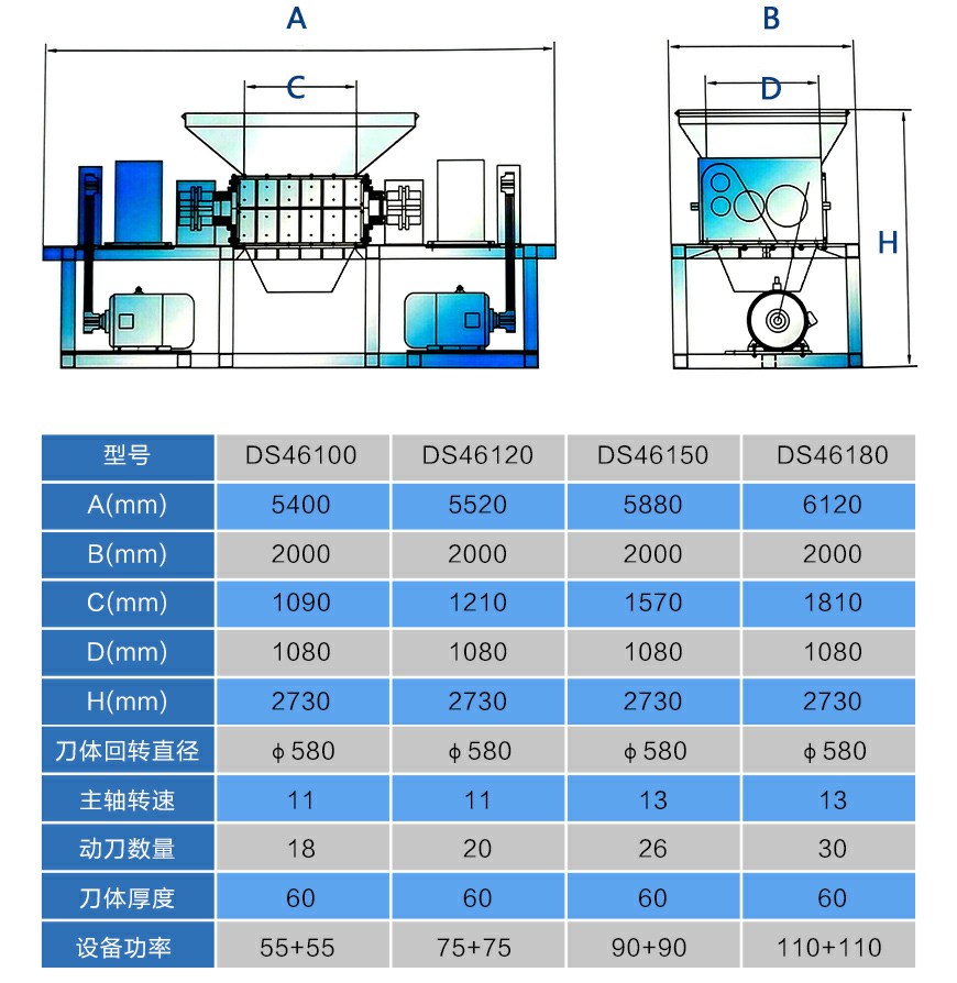●選配液壓強制喂料裝置,快速地撕碎物料;